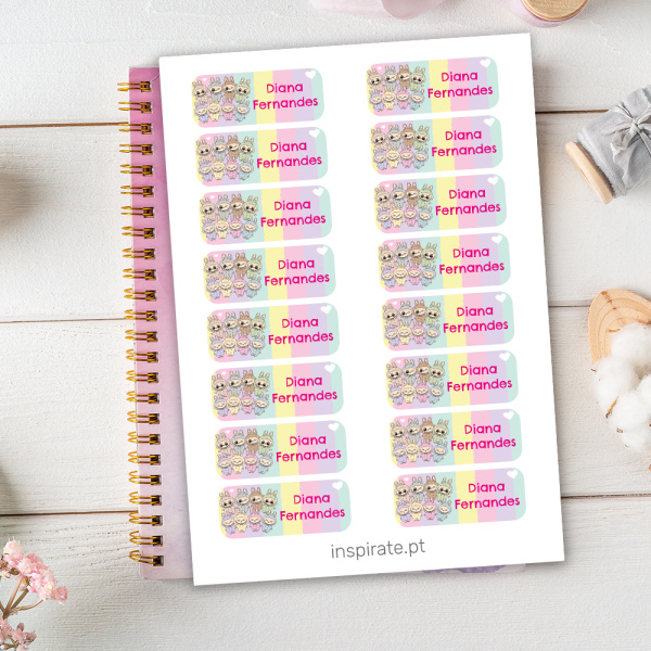 Apresentamos-lhe o nosso Kit de Etiquetas Autocolantes para Material e Objetos Escolares, composto por: