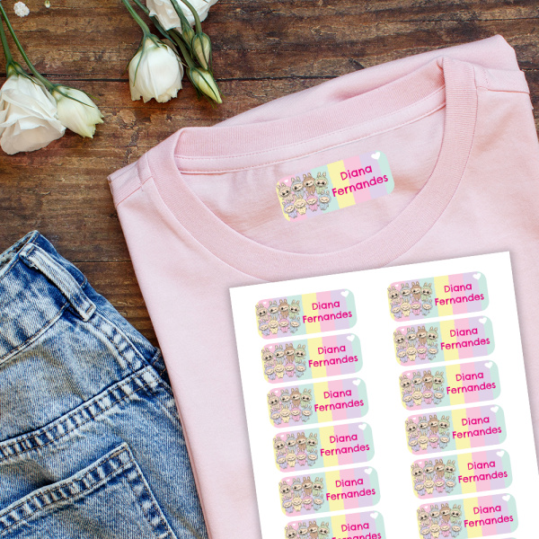► 16 etiquetas de roupa de 5 x 2 cm, ideais para marcar t-shirts, camisolas, etc.